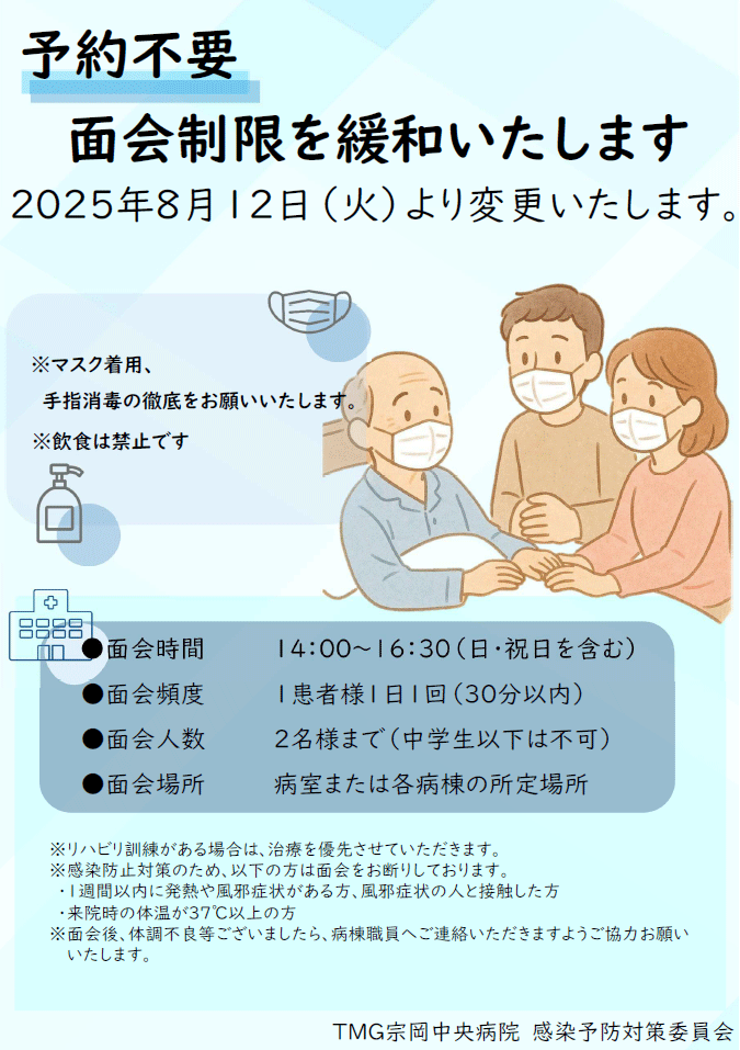 2. 面会後に感染症状の出現があった場合は速やかに病棟責任者までご連絡をお願いします。